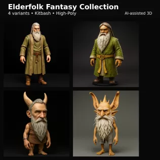 Elderfolk Fantasy Collection (4 Variants) — High-Poly Kitbash