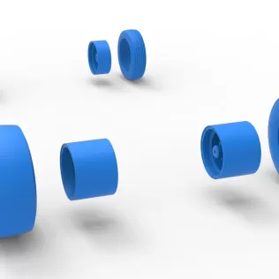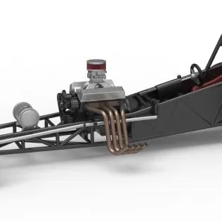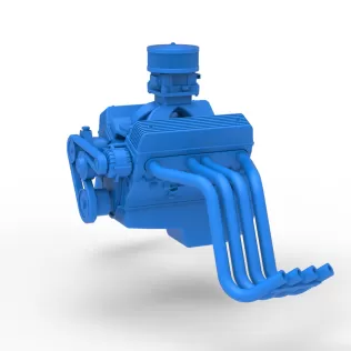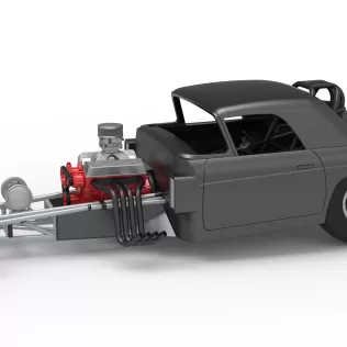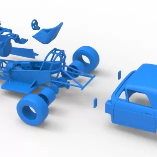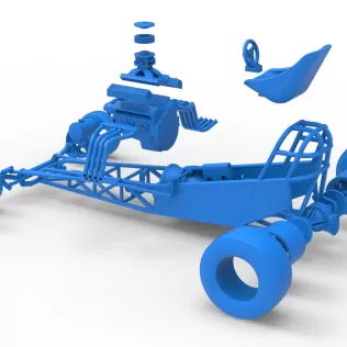 The model consists of parts: Air filter, Air intake, Body, Engine, Exhaust pipes part 1,2, Front rims, Front tires, Fuel tank, Oil tank, Radiator, Rear left tire, Rear right tire, Rear rims, Rim covers, Seat part 1,2, Steering wheel.