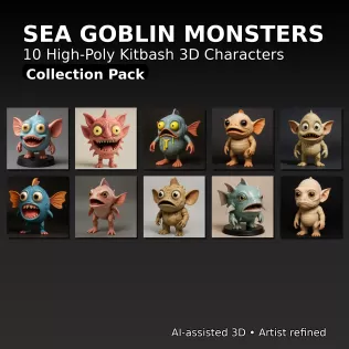 Sea Goblin Monsters – 10 High-Poly Kitbash Creature Pack
