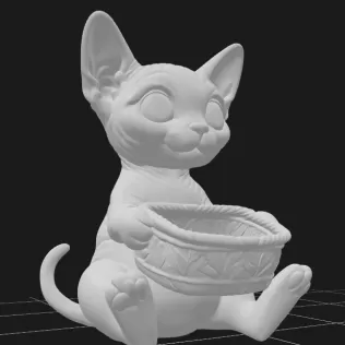 This STL model features an adorable kawaii-style fox sitting upright and holding an open decorative basket. With its large pointed ears, rounded muzzle, and friendly expression, the fox has a warm and playful look. The basket is gently tilted forward so the inside and bottom are visible, making it ideal for holding small gifts, candy, or decorative items.