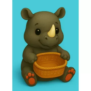 This model is suitable for FDM printers using PLA or similar filament. The hippo sits flat and stable on the build plate while holding the basket in front. The rounded shapes and smooth surfaces print cleanly. Printing upright is recommended. Light supports may be used under the basket and hands if needed, depending on printer settings.