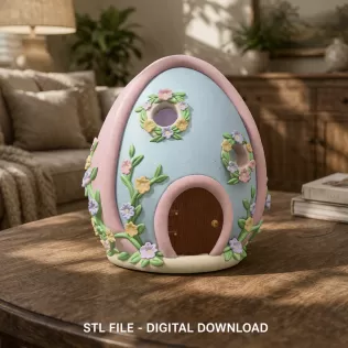 Bring a playful and colorful touch to your Easter and spring decorations with this adorable Cute Fantasy Egg House. This charming 3D printable model transforms a classic Easter egg shape into a whimsical fairy-tale cottage filled with delightful decorative details.