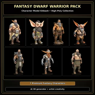 Each character is designed with strong silhouettes, detailed anatomy, armor panels, creature textures, and stylized proportions, making them suitable for fantasy worlds, sci-fi games, cinematic scenes, collectibles, animation projects, and 3D printing display pieces.