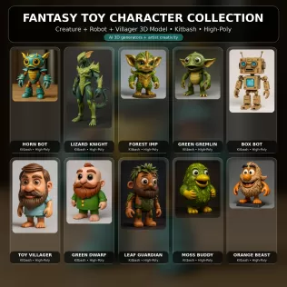 Fantasy Toy Character Collection Kitbash High-Poly 3D Model Set